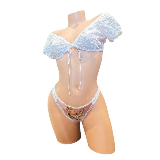 White cottage core cotton poplin eyelet peasant bra top - exotic dancewear