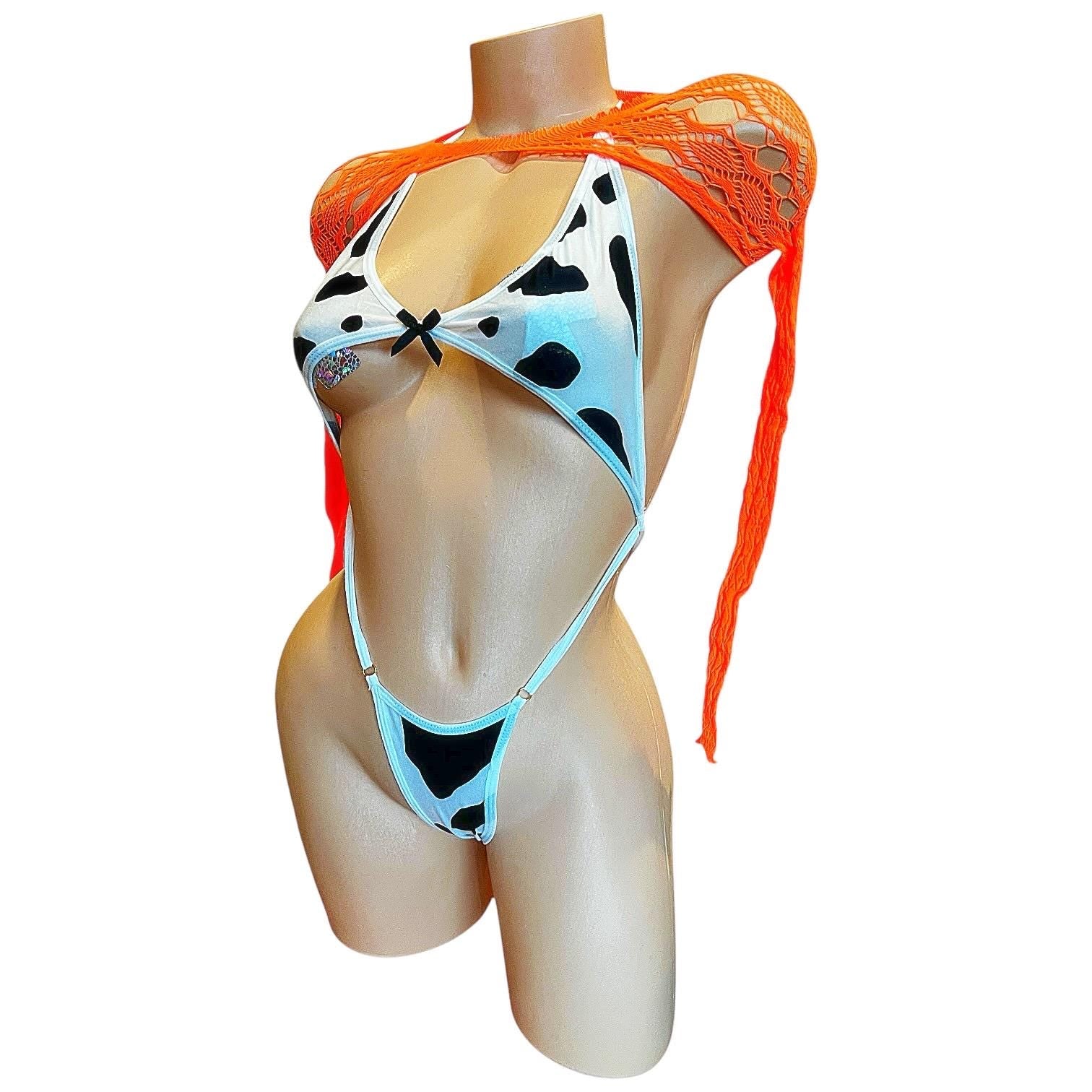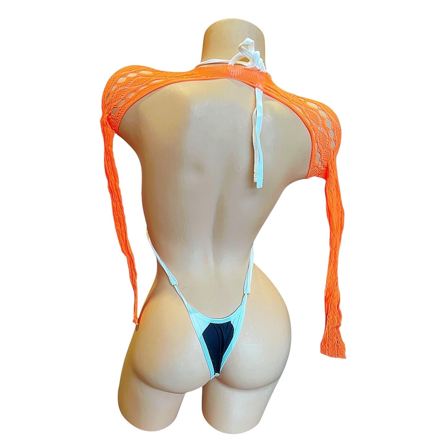Orange Lace Sheer Mesh Fishnet Mini Tube Dress with Long Sleeve Shrug - EXOTIC DANCEWEAR
