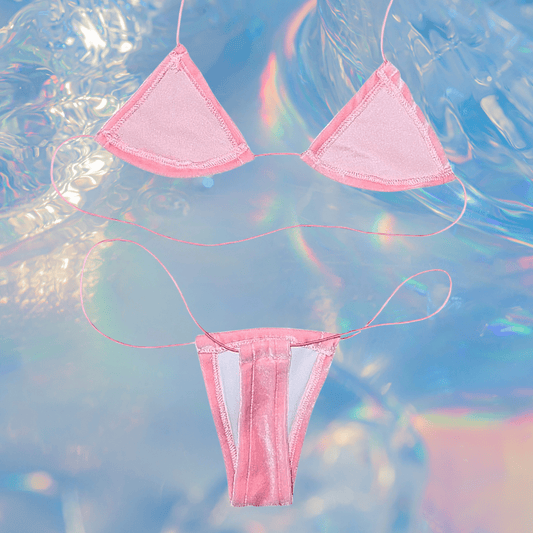 Pastel Pink Velvet Microkini Set